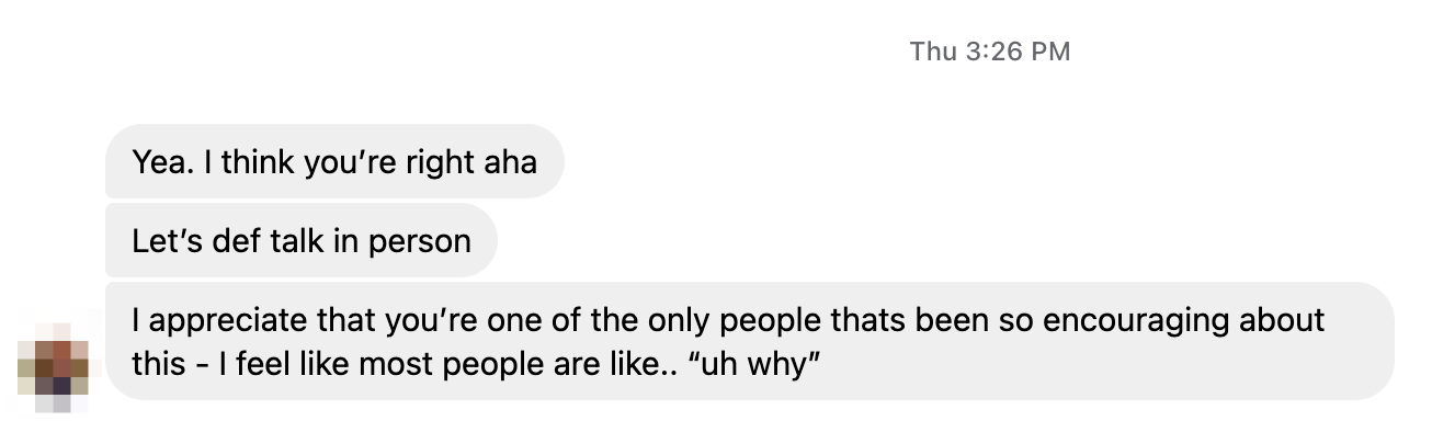 Luckily I've had many supportive friends, mentors, and coaches who have wholeheartedly encouraged me to follow my bliss. I know everyone may not have that kind of social support.